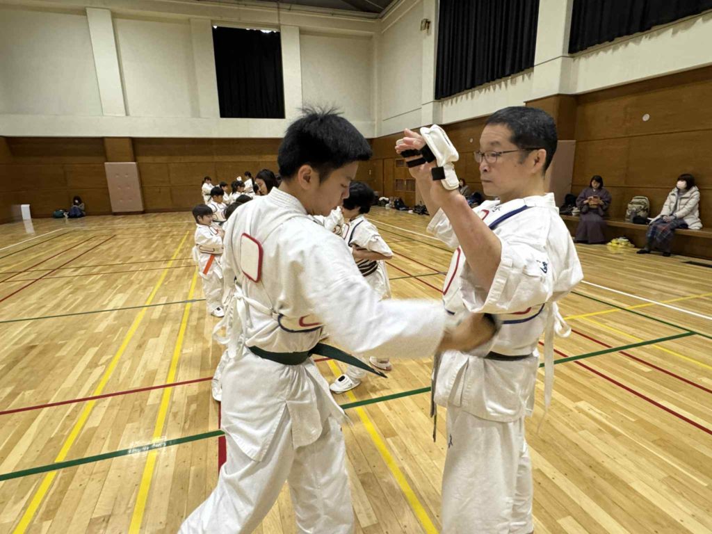 後半はルールを確認しつつ赤石師範 福田支部長荒田支部長に審判の行い方も覚えていただく為にも練習試合のジャッジをしていただきました。